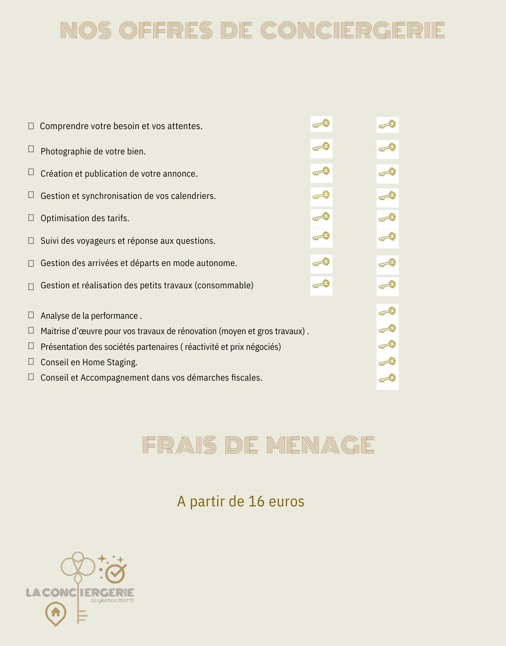 NOTRE OFFRE DE CONCIERGERIE